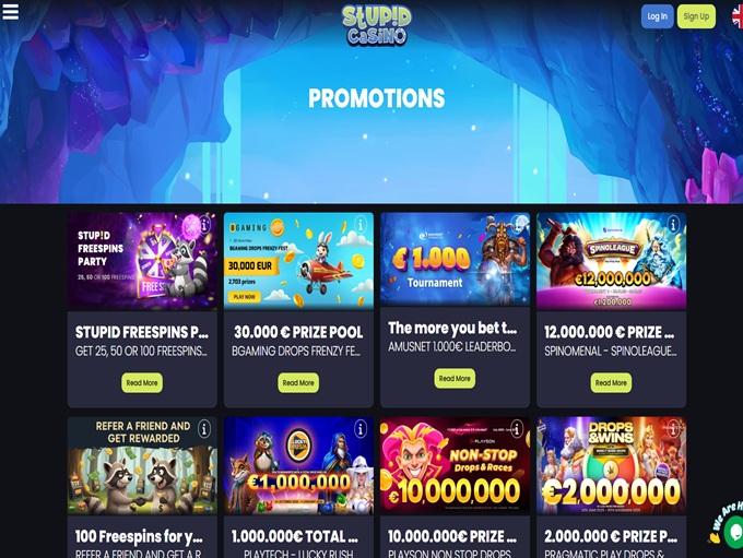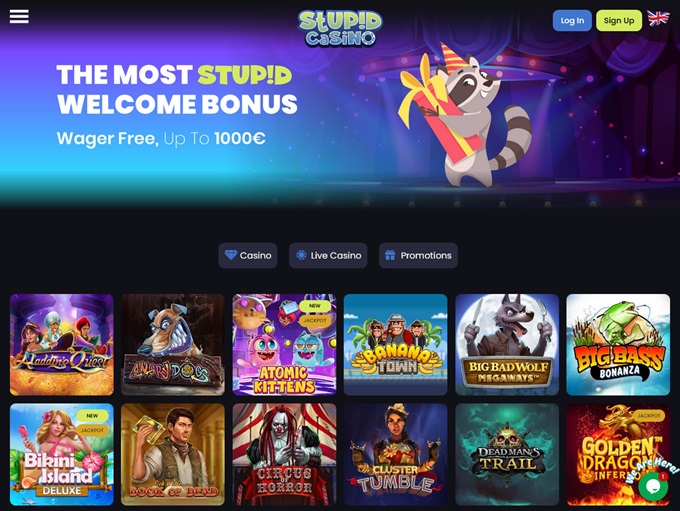 Stupid Casino, lanzado en 2023 y operado por Versus Odds BV bajo una licencia de Curazao (licencia n.° OGL/2024/1335/0780), hace honor a su nombre desenfadado con una promesa audaz: una enorme variedad de juegos, métodos de pago compatibles con criptomonedas y bonos sin requisitos de apuesta. A primera vista, su diseño con temática de mapaches y su imagen de marca irónica le dan un aire divertido, pero en realidad ofrece una propuesta seria para los jugadores que valoran la equidad y la flexibilidad.