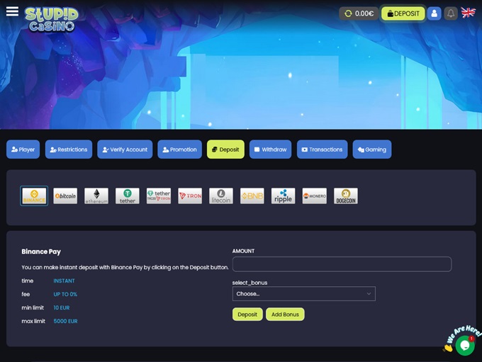 Stupid Casino ofrece herramientas de juego responsable como límites de depósito y autoexclusión.