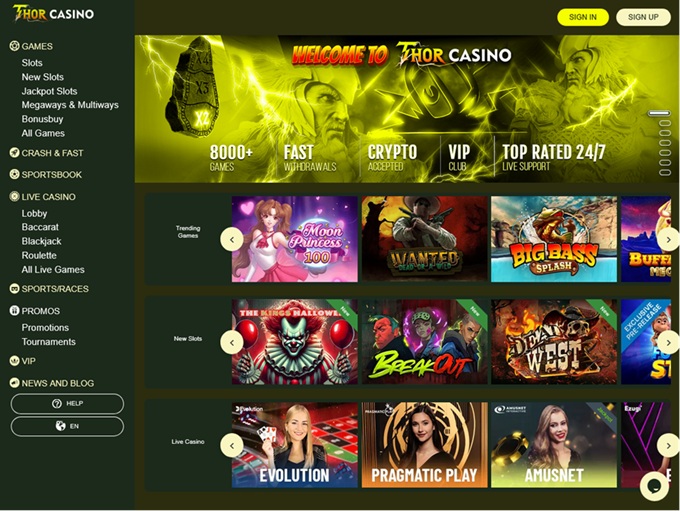 Con títulos de NetEnt, Evolution, Microgaming, Pragmatic Play y más de 60 proveedores, ThorCasino ofrece un amplio catálogo: