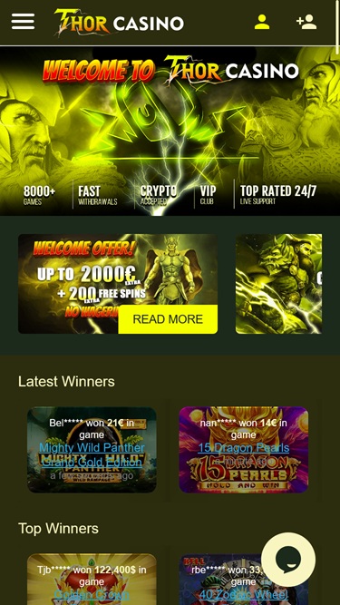 ThorCasino, lanzado en 2022 y operado por Versus Odds BV con licencia de Curazao 8048/JAZ2021-074, forma parte del Grupo Memato, uniéndose a sitios similares como MondCasino, Betroom24 y ArtCasino. Con una sólida presencia en Canadá, Noruega, Alemania e Irlanda, este casino combina la temática vikinga con las expectativas de los juegos modernos.