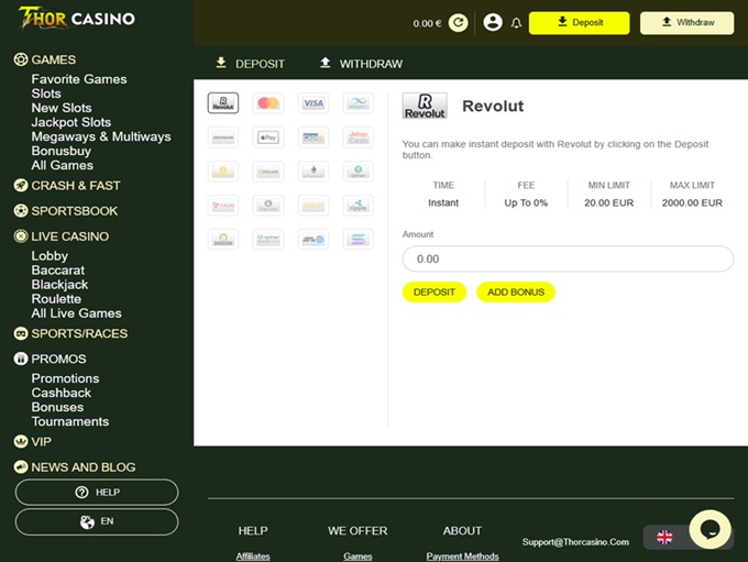 Nuestra opinión : Añadí el depósito mínimo de $30 con Thron. El depósito se procesó de inmediato, así que pude jugar a las tragamonedas que me gustaban. Primero probé el modo "Jugar por diversión" y luego jugué con dinero real. Los juegos funcionaron muy bien y sin problemas.
