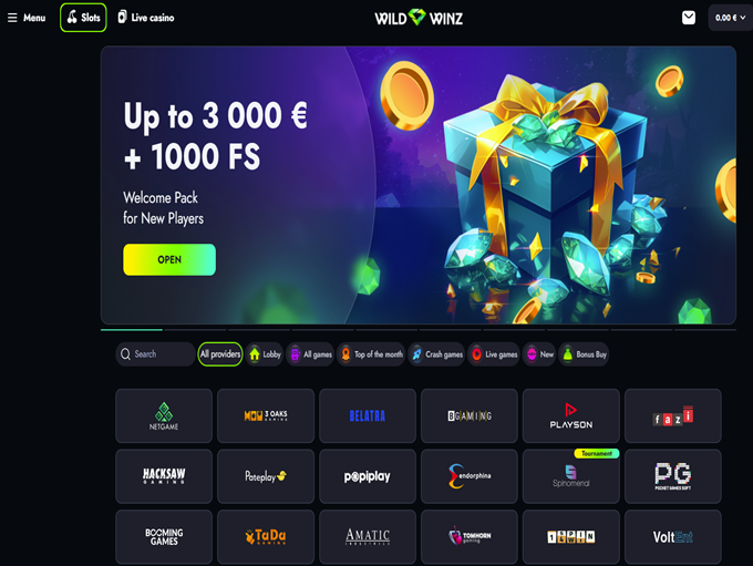 Wild Winz Casino cuenta con miles de juegos desarrollados por proveedores de software de élite como Pragmatic Play, Playson, NetGame, Booming Games, 3 Oaks y Spinomenal .