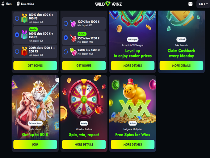 - Con una amplia gama de géneros —desde tragamonedas y casino en vivo hasta juegos de mesa— Wild Winz funciona como un verdadero destino de juegos integral .
