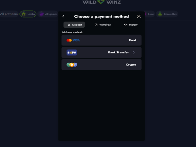 Desde la primera visita, Wild Winz se siente elegante, moderno y fácil de usar, ya sea al registrarte, explorar juegos o reclamar tu primer bono. El registro es muy sencillo y rápido. Estás a solo unos clics del lobby del casino.